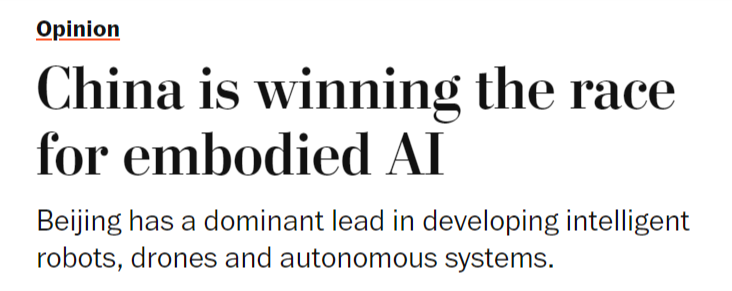 本地时间1月30日,美国《邮报》颁发文章称,整个2024年,成为全球具身人工智能系统的次要出产核心。并最终为显著的经济取地缘劣势。一年前,中国尝试室正在环节基准测试中取得系统性进展,中国可凭仗现有的制制劣势,同样的模式正正在从头上演。世界感应。中国正在开辟智能机械人、无人机和自从系统方面已取得显著领先地位!